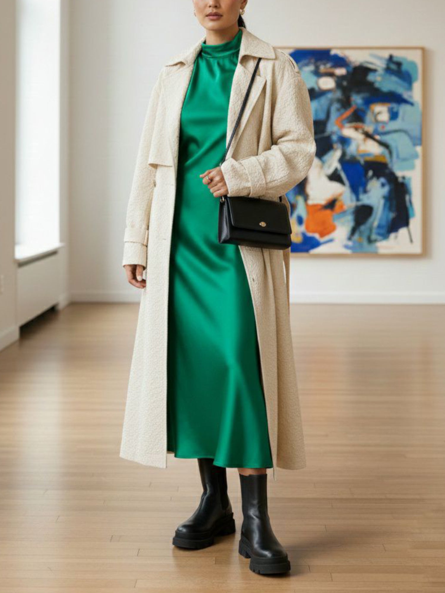 Hohe, klobige Chelsea Boots, die auf der Wade sitzen.