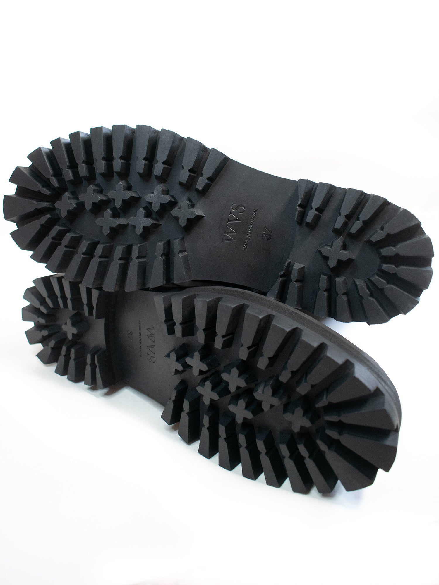 - Große Laufsohlen mit 4 cm Absatzhöhe (vorne 3 cm) und einem sehr tiefen Profil.