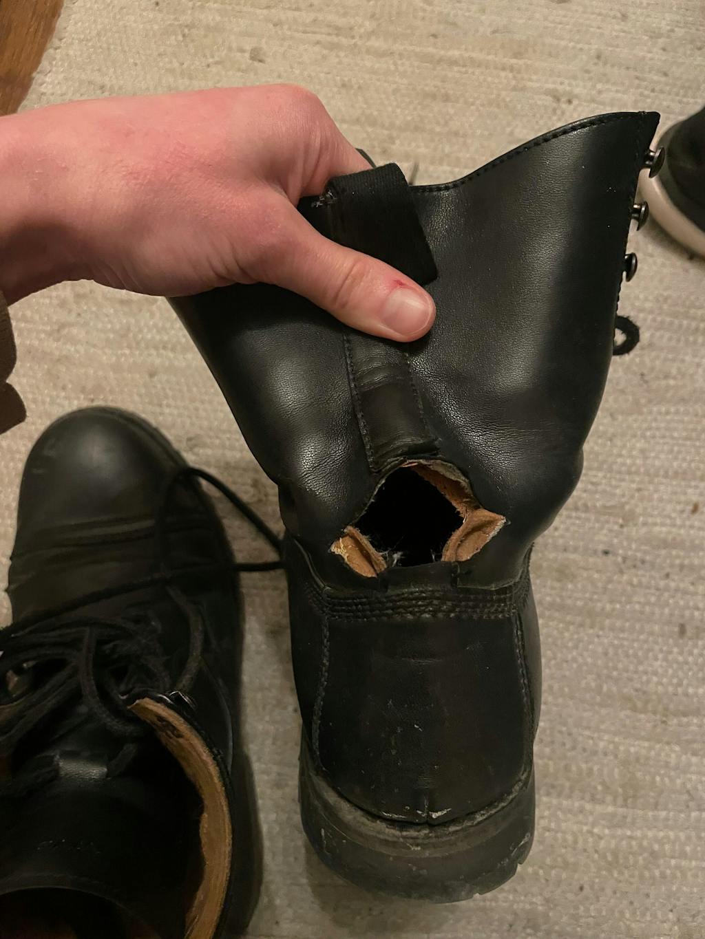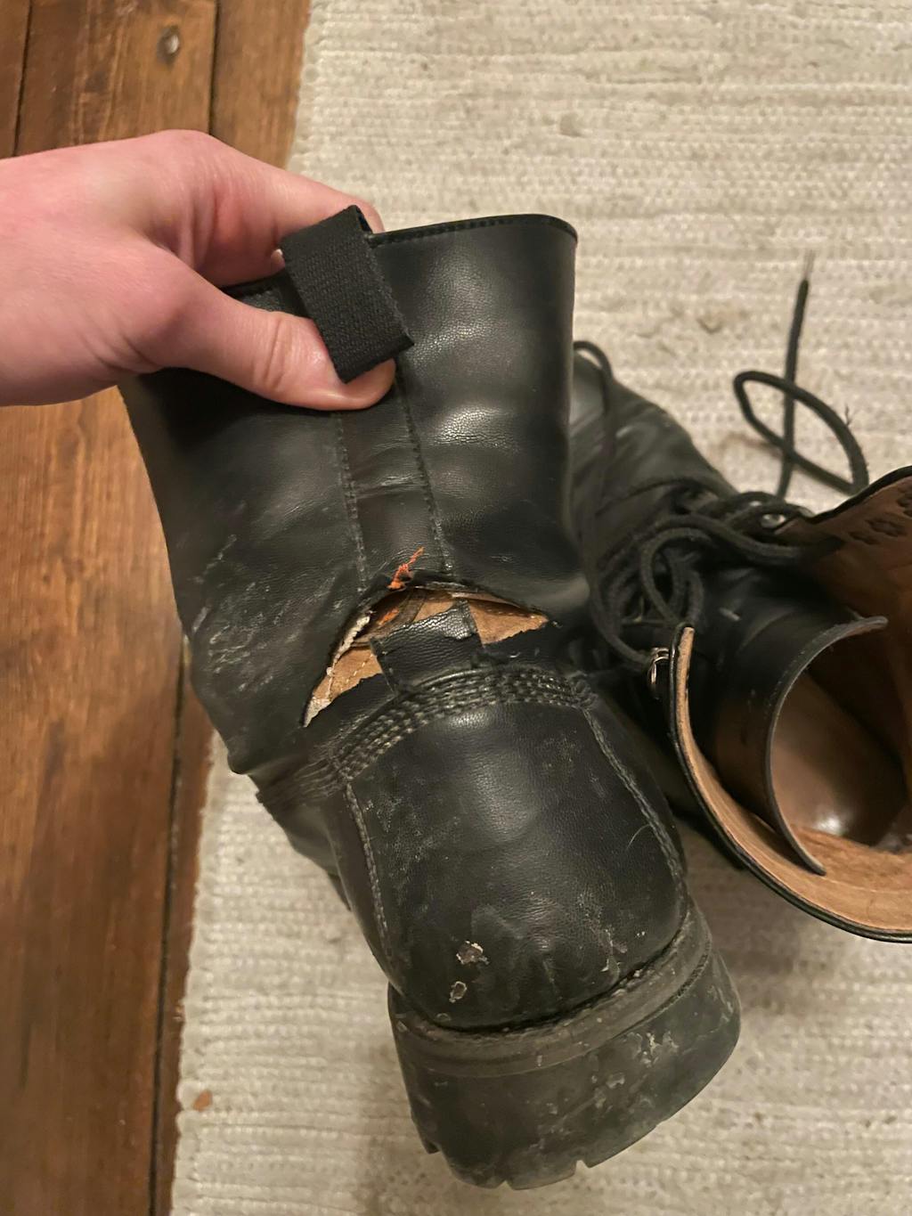 - Das italienische Leder (69 % biobasiert) wurde um die klassische 9-Ösen-Silhouette des taktischen Stiefels geformt, die sich an deine Beine anschmiegt. Du kannst das Obermaterial polieren, damit es wie neu aussieht und einen schönen Glanz erhält.
